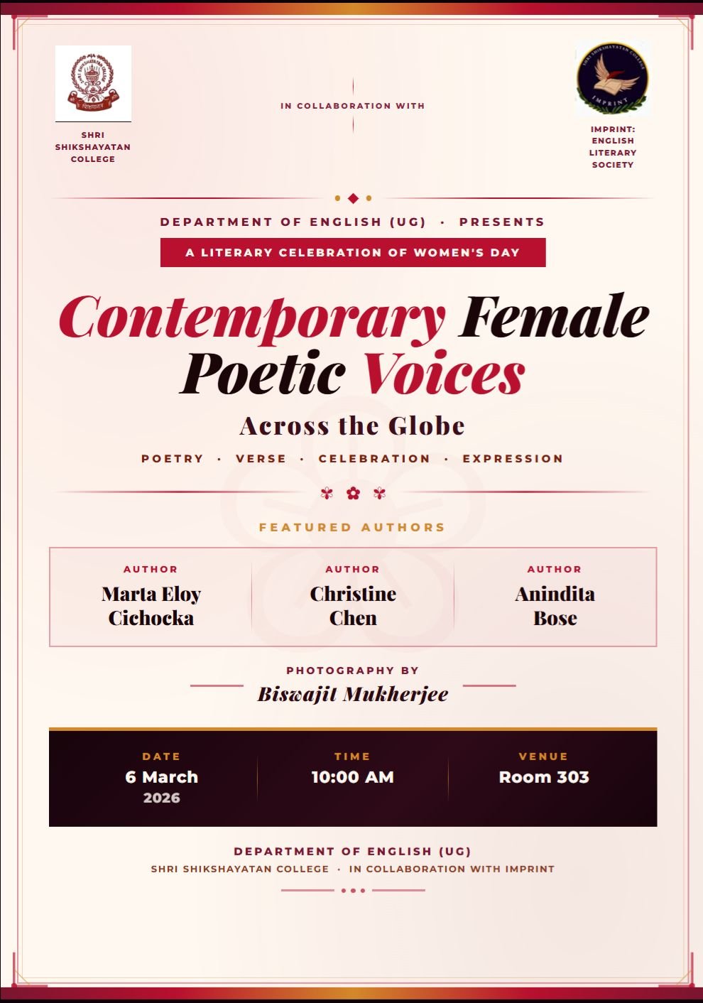 CONTEMPORARY FEMALE POETIC VOICES ACROSS THE GLOBE: A LITERARY CELEBRATION OF WOMEN’S DAY – DEPARTMENT OF ENGLISH (UG) IN COLLABORATION WITH IMPRINT: ENGLISH LITERARY SOCIETY – Shri Shikshayatan College