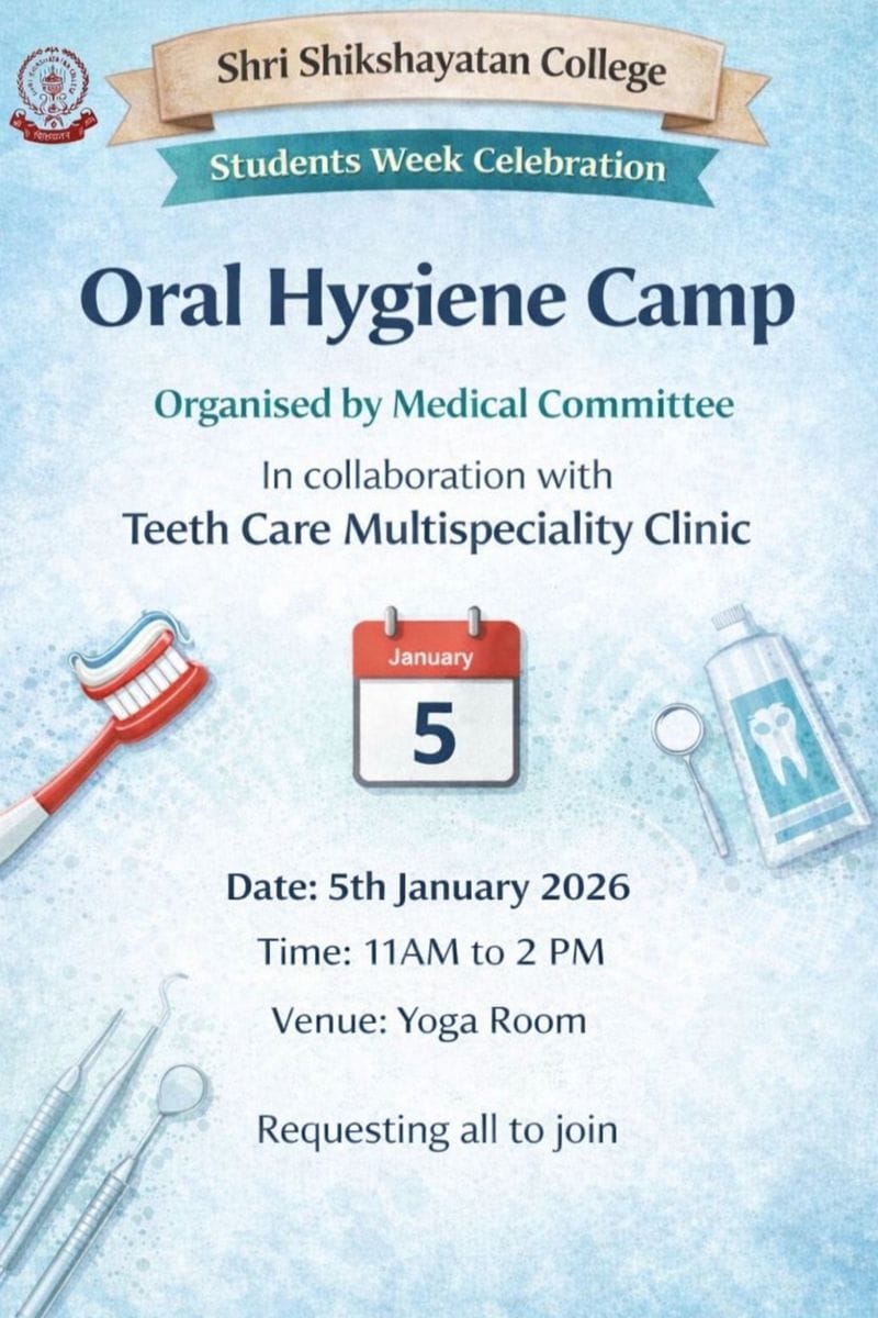 ORAL HYGIENE CAMP – STUDENTS’ WEEK CELEBRATION – MEDICAL COMMITTEE – Shri Shikshayatan College