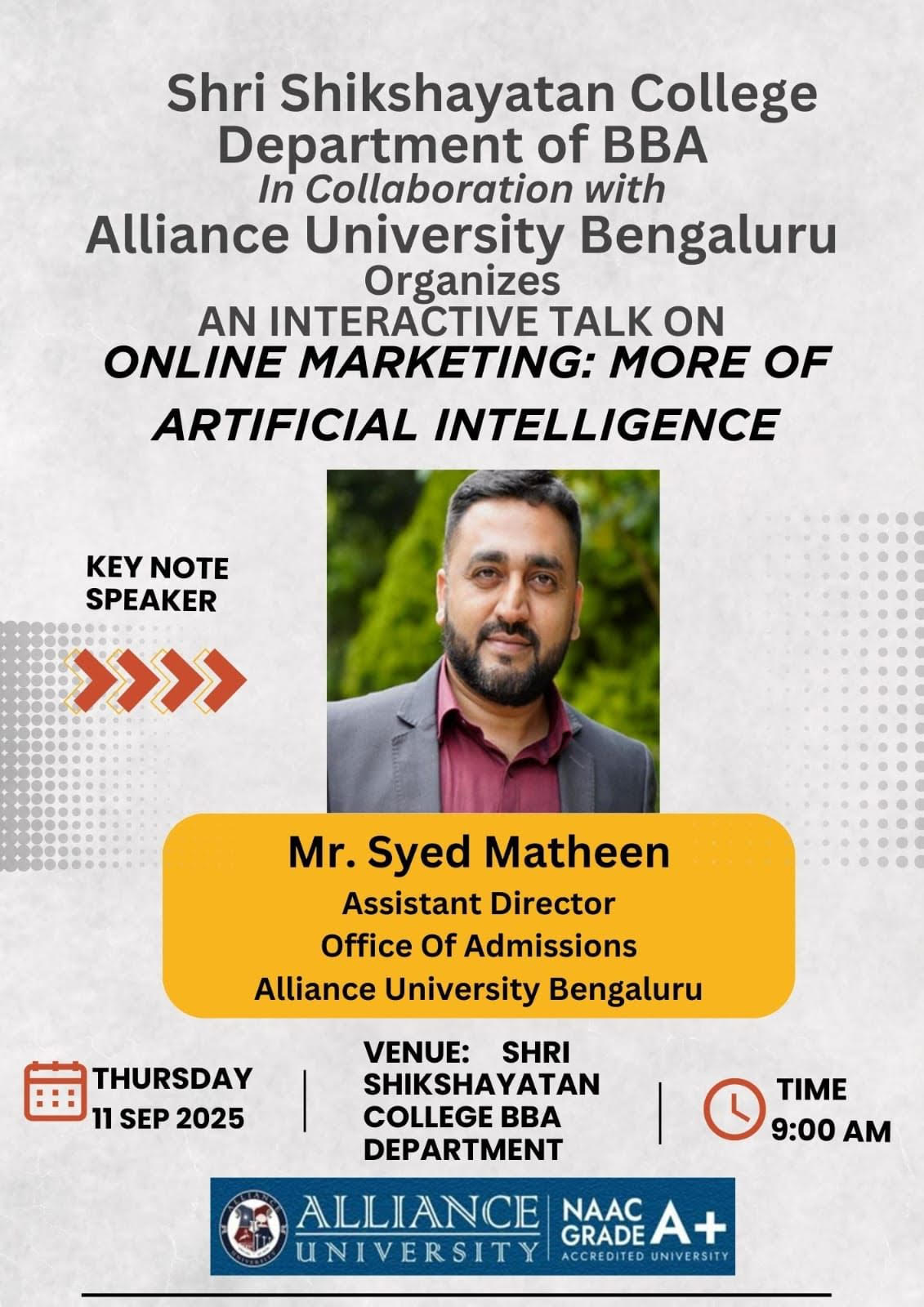 SPECIAL LECTURE IN COLLABORATION WITH ALLIANCE UNIVERSITY – DEPARTMENT OF BUSINESS ADMINISTRATION – Shri Shikshayatan College